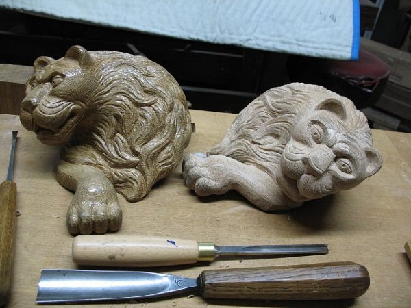 "Doorway Guardians"-- hand carved Spessart Oak.